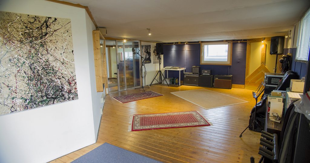 Auf insgesammt hundert Quadratmetern kann man sich hier frei entfalten. Es gibt einen großen Aufnahmeraum (50m²), einen Regieraum (23m²), eine kleinere Drum- oder Vocalbooth(10m²), Teeküche und WC.